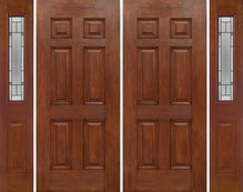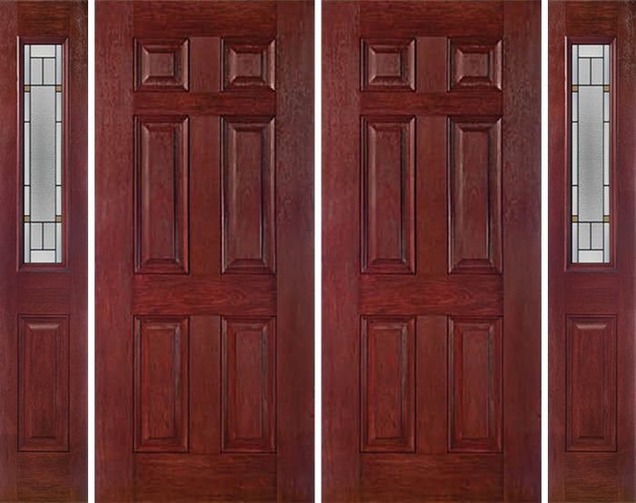 WDMA 88x80 Door (7ft4in by 6ft8in) Exterior Cherry Six Panel Double Entry Door Sidelights 1/2 Lite TP Glass for UK