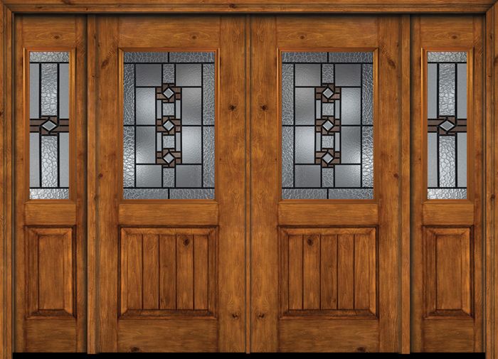 Please write your review of WDMA 88x80 Door (7ft4in by 6ft8in) Exterior Cherry Alder Rustic V-Grooved Panel 1/2 Lite Double Entry Door Sidelights Mission Ridge Glass.