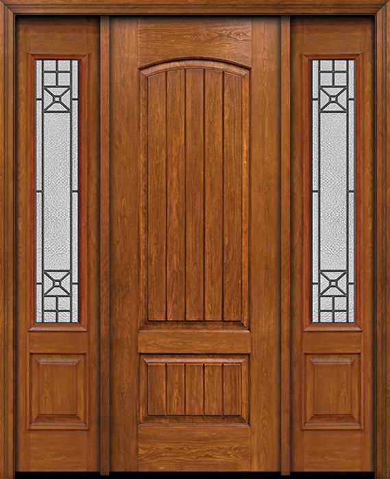 WDMA 54x96 Door (4ft6in by 8ft) Exterior Cherry 96in Plank Two Panel Single Entry Door Sidelights Courtyard Glass Attributes Table