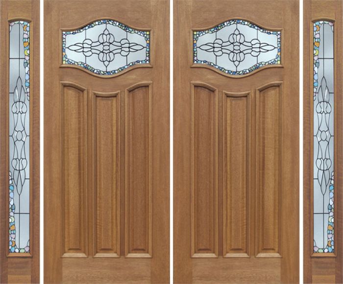 WDMA 88x80 Door (7ft4in by 6ft8in) Exterior Mahogany Wisteria Double Door/2side w/ Tiffany Glass Attributes Table