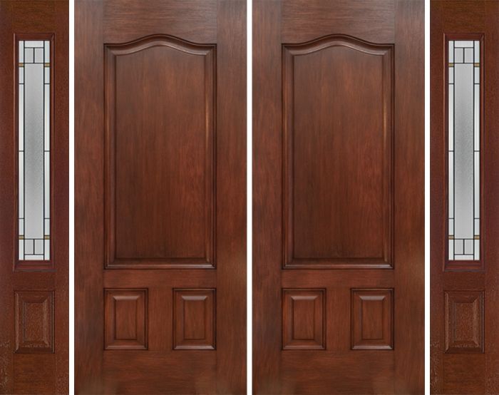 WDMA 88x80 Door (7ft4in by 6ft8in) Exterior Mahogany Three Panel Double Entry Door Sidelights TP Glass Attributes Table