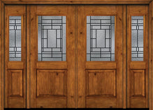 WDMA 88x80 Door (7ft4in by 6ft8in) Exterior Cherry Alder Rustic V-Grooved Panel 1/2 Lite Double Entry Door Sidelights Pembrook Glass for UK