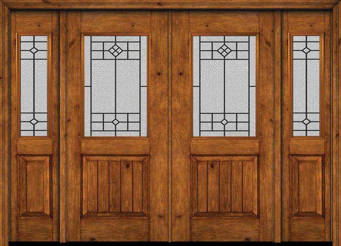 WDMA 88x80 Door (7ft4in by 6ft8in) Exterior Cherry Alder Rustic V-Grooved Panel 1/2 Lite Double Entry Door Sidelights Beaufort Glass Attributes Table