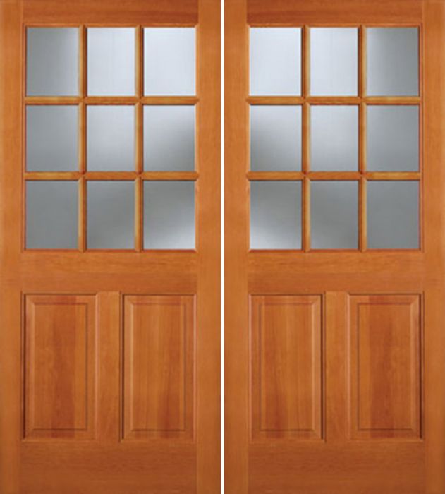 WDMA 64x80 Door (5ft4in by 6ft8in) Exterior Fir 944 9 Lite 2 Panel Double Door