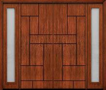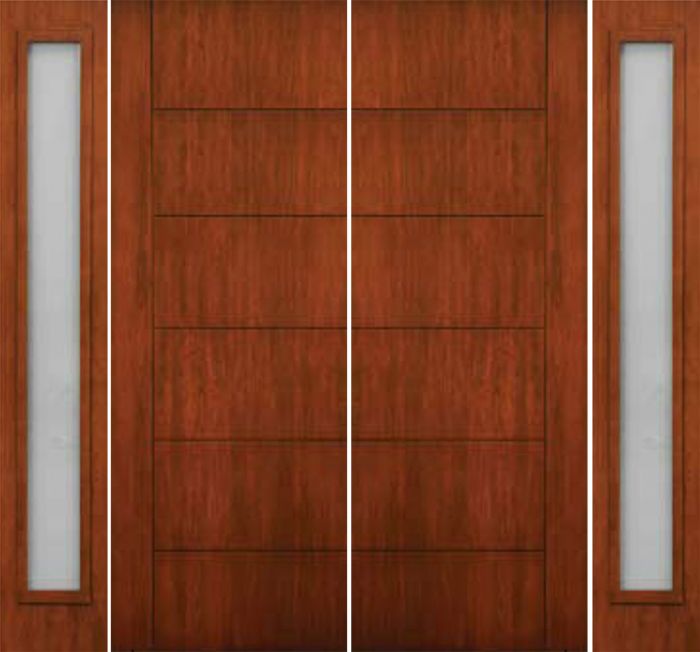 WDMA 108x96 Door (9ft by 8ft) Exterior Cherry 96in Contemporary Lines Single Vertical Grooves Double Fiberglass Entry Door Sidelights