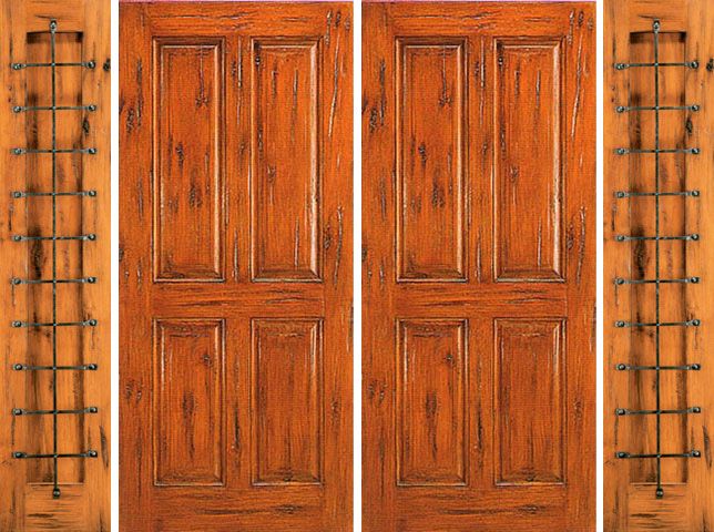 WDMA 108x96 Door (9ft by 8ft) Exterior Knotty Alder Entry Prehung Double Door with Two Sidelights 4-Panel