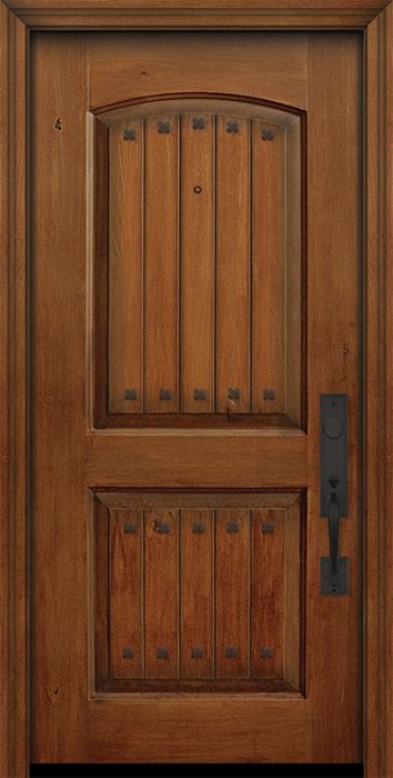 WDMA 32x80 Door (2ft8in by 6ft8in) Exterior Knotty Alder IMPACT | 80in 2 Panel Arch V-Grooved Door with Clavos Attributes Table