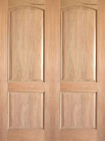 WDMA 48x80 Door (4ft by 6ft8in) Interior Swing Tropical Hardwood Rustic-1 2 Panel Arch Top Panel V-Grooved Double Door