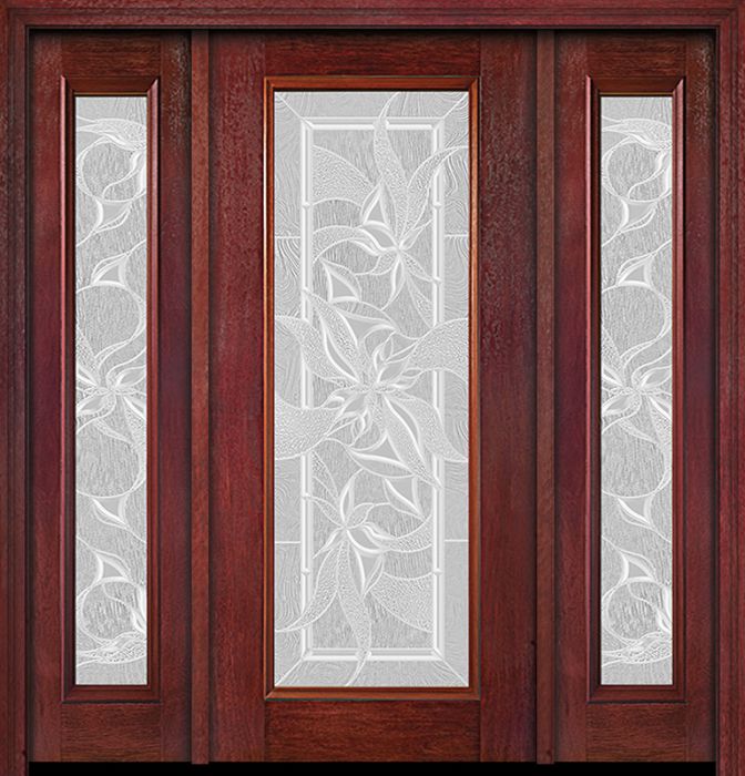 WDMA 54x80 Door (4ft6in by 6ft8in) Exterior Cherry Full Lite Single Entry Door Sidelights Impressions Glass