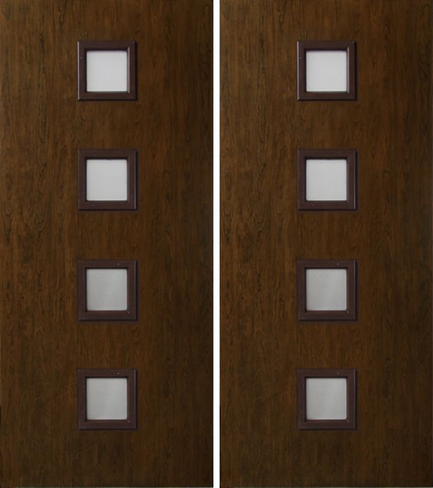 WDMA 60x80 Door (5ft by 6ft8in) Exterior Cherry Contemporary Four Square Lite Double Entry Door