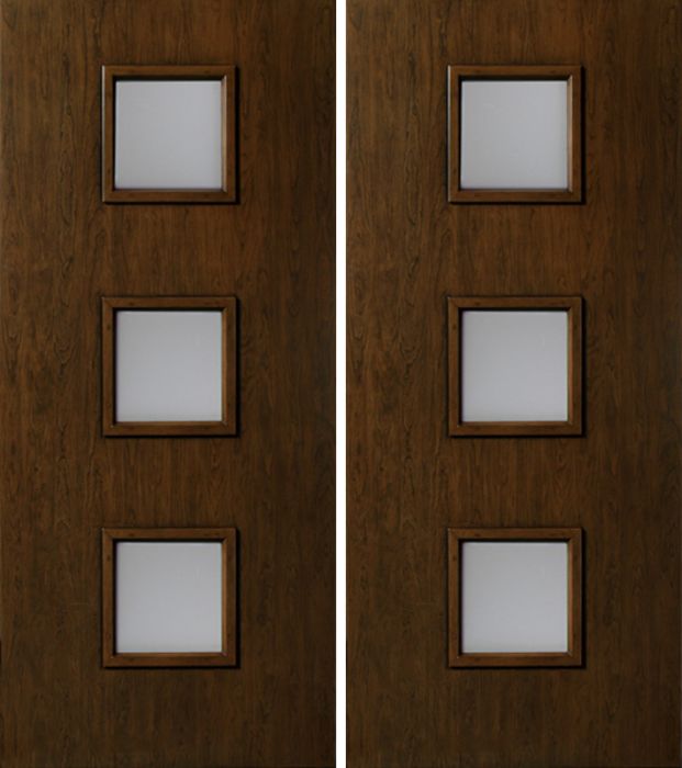 WDMA 60x80 Door (5ft by 6ft8in) Exterior Cherry Contemporary Three Square Lite Double Entry Door