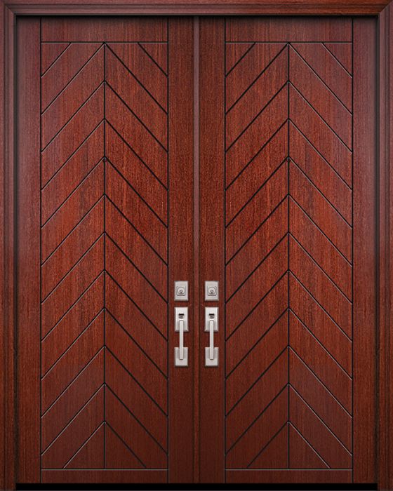 WDMA 64x96 Door (5ft4in by 8ft) Exterior Mahogany 96in Double Chevron Solid Contemporary Door