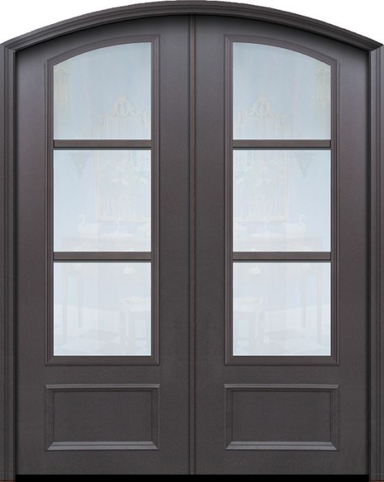 WDMA 64x96 Door (5ft4in by 8ft) French 96in ThermaPlus Steel 3 Lite Arch Top Arch Lite SDL Double Door for UK