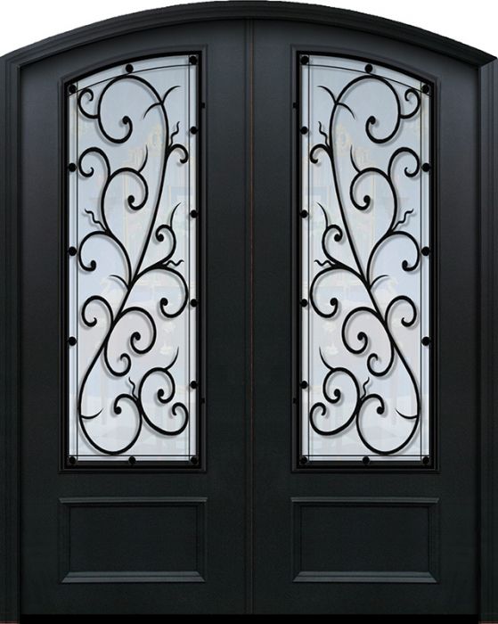 WDMA 64x96 Door (5ft4in by 8ft) Exterior 96in ThermaPlus Steel Bellagio 1 Panel Arch Top Arch Lite Double Door