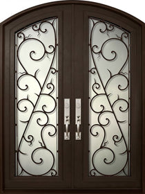 WDMA 72x96 Door (6ft by 8ft) Exterior Mahogany Round Top Solid Double Doors with Glass Attributes Table