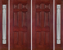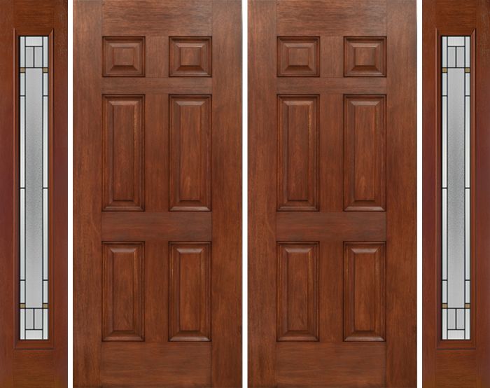 WDMA 84x80 Door (7ft by 6ft8in) Exterior Mahogany Six Panel Double Entry Door Sidelights Full Lite TP Glass