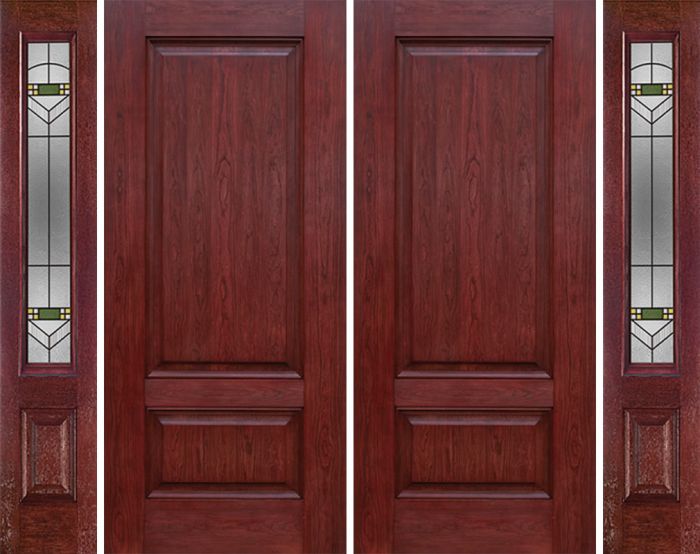 WDMA 84x80 Door (7ft by 6ft8in) Exterior Cherry Two Panel Double Entry Door Sidelights GR Glass