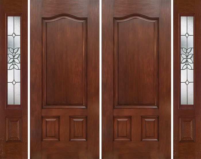 WDMA 84x80 Door (7ft by 6ft8in) Exterior Mahogany Three Panel Double Entry Door Sidelights CD Glass