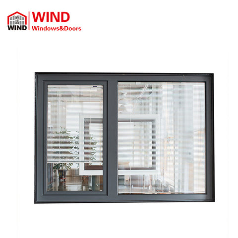 Aluminum Wood Inward Opening Casement Windows with Built in Blinds