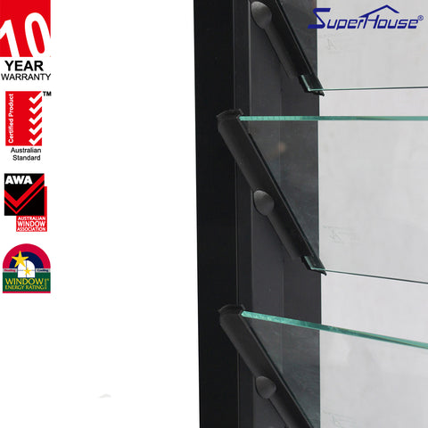 Product Description   Series: Commercial system SP130 series Name/Model: Australia AS2047 standard and NOA standard Electric Adjustable glass louvre door Standard/Certificate: Comply with AS2047/CSAStandrd/NFRC/Florida standard Glass Standard: Comply with AS2208/IGCC Color choice: Standard:matt black;frosted black;white;Grey. Customized:Brozen;sliver grey;clear anodized;wood color and some others. Thermal Insulation: U value from 1.5 to...