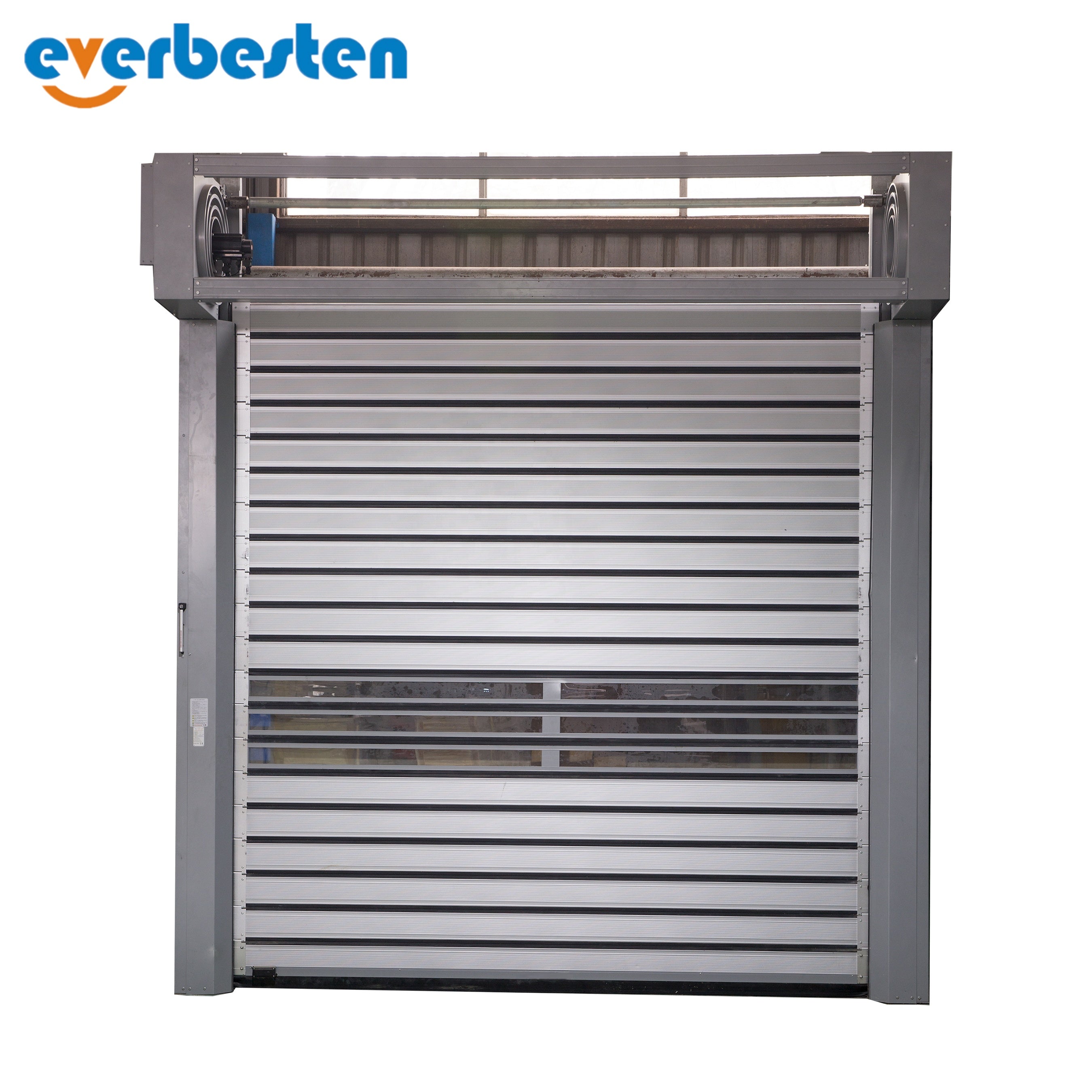 Promotion!!! Product Details What is the feature of high speed spiral door? 1) Aluminum Alloy lathes and foam inserted and viewing windows as standard 2) Emergency handle equipment for surviving 3) Given frictionless for lathes operation to longer the using life 4) Weight balance with springs and belt 5) Basically no maintenace on the whole door...