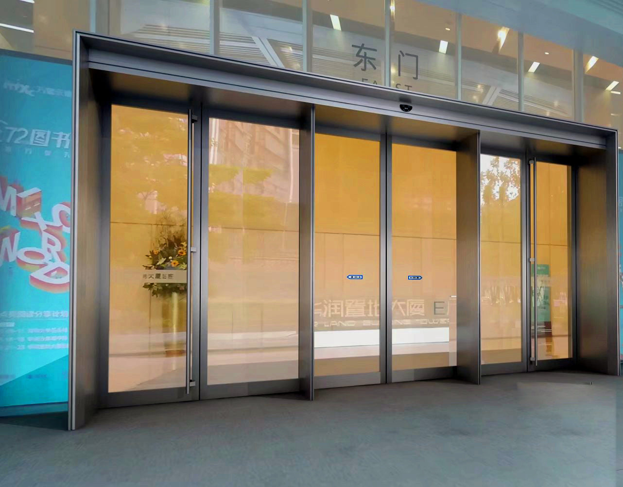 Hotel hospital bank stainless steel frame automatic sliding glass door with unit on China WDMA for UK