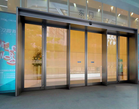 Products Show Hotel hospital bank stainless steel frame automatic sliding glass door with unit Aluminum alloy frame tempered glass panels automatic door for shopping mall. Hotel 10mm tempered glass automatic door with frameless. Customized Colorful glass Patten for automatic door. Caesar ES200 automatic door operator, derived from...