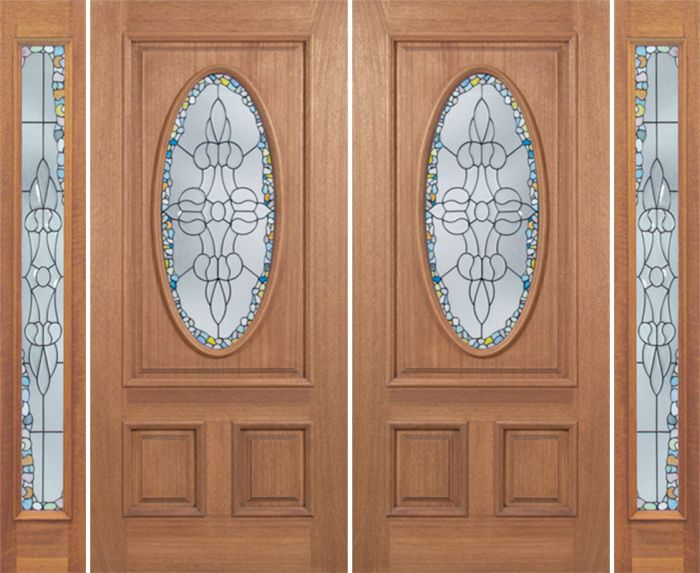 WDMA 100x80 Door (8ft4in by 6ft8in) Exterior Mahogany Maryvale Double Door/2side w/ Tiffany Glass