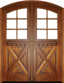 WDMA 72x108 Door (6ft by 9ft) Exterior Mahogany Craftsman 2 Panel Vertical 6 Lite Double Door/Arch Top
