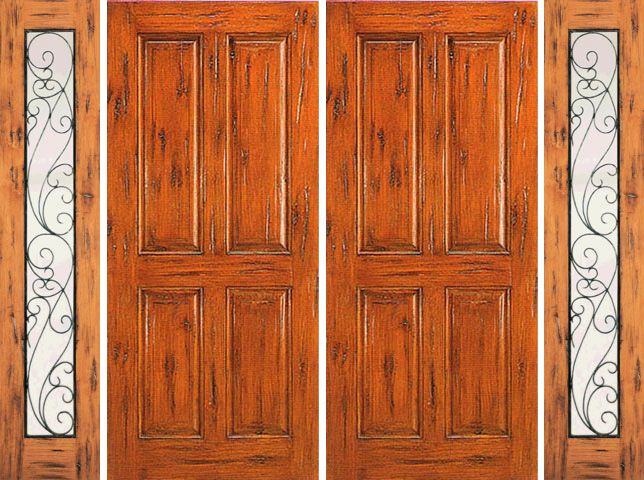 WDMA 120x80 Door (10ft by 6ft8in) Exterior Knotty Alder Double Door with Two Sidelights Entry Prehung 4-Panel