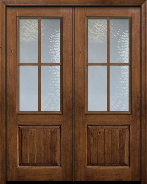 WDMA 64x96 Door (5ft4in by 8ft) Exterior Knotty Alder IMPACT | 96in Double 2/3 Lite 1 Panel 4 Lite SDL Door