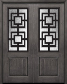 WDMA 64x96 Door (5ft4in by 8ft) Exterior Knotty Alder IMPACT | 96in Double 1 Panel 2/3 Arch Lite St Charles Door