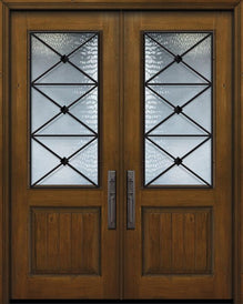 WDMA 64x96 Door (5ft4in by 8ft) Exterior Knotty Alder 96in Double 1 Panel 2/3 Lite Contempo Steel Grille Door