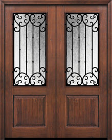 WDMA 64x96 Door (5ft4in by 8ft) Exterior Knotty Alder 96in Double 1 Panel 2/3 Lite La Salle Door