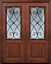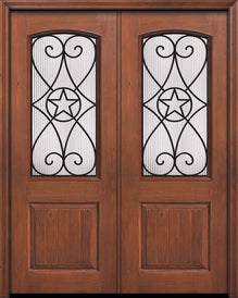 WDMA 64x96 Door (5ft4in by 8ft) Exterior Knotty Alder 96in Double 1 Panel 2/3 Arch Lite Florence Door