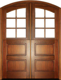 WDMA 72x108 Door (6ft by 9ft) Exterior Mahogany Craftsman 2 Panel Vertical 6 Lite Double Door/Arch Top