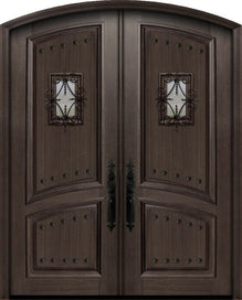 WDMA 72x96 Door (6ft by 8ft) Exterior Knotty Alder 36in x 96in Double Arch Top 2 Panel Estancia Alder Door with Speakeasy / Clavos