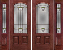 WDMA 88x80 Door (7ft4in by 6ft8in) Exterior Oak Wellesley Half Lite 2 Panel Fiberglass Double Door 2 Sides