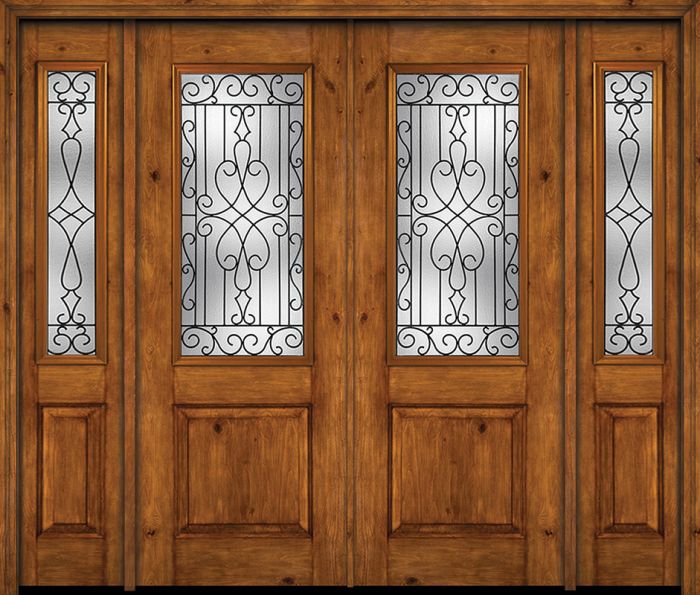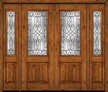 WDMA 88x96 Door (7ft4in by 8ft) Exterior Knotty Alder 96in Alder Rustic Plain Panel 2/3 Lite Double Entry Door Sidelights Wyngate Glass