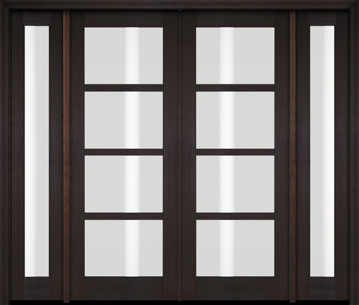 WDMA 76x80 Door (6ft4in by 6ft8in) Exterior Swing Mahogany 4 Lite Windermere Shaker Double Entry Door Sidelights