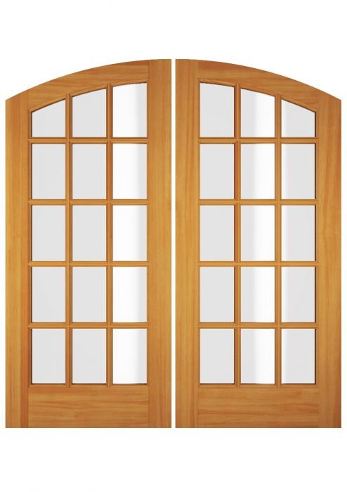 WDMA 68x78 Door (5ft8in by 6ft6in) Exterior Swing Oak Wood Full Lite 15 Lite Arch Lite / Top Lite Double Door