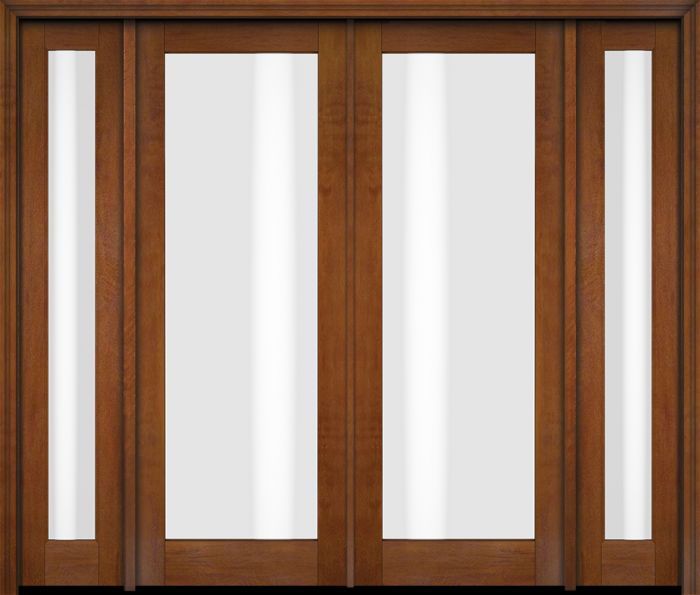 WDMA 76x80 Door (6ft4in by 6ft8in) Exterior Swing Mahogany Modern Full Lite Shaker Double Entry Door Sidelights