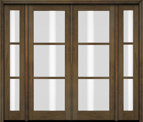 WDMA 76x80 Door (6ft4in by 6ft8in) Exterior Swing Mahogany 3 Lite TDL Double Entry Door Sidelights