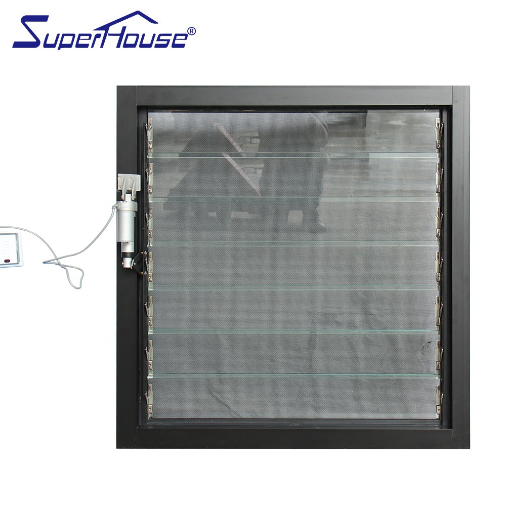 Product Description Large size Electric aluminium frame adjustable glass louvre window for sale Superhouse louvre window is masterfully engineered to provide the slim profile that elegantly compliments both modern and traditional styles of architecture.This kind of sun-shading window is created with maximum air ventilation and light penetration.Meanwhile it can remain...