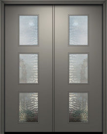 WDMA 84x96 Door (7ft by 8ft) Exterior Mahogany 42in x 96in Double Newport Solid Contemporary Door w/Textured Glass