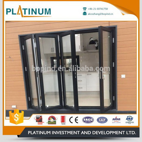 Product Description Aluminum glass folding accordion door Our products have CE and AWA certificates Product Name: Thermal-break JL65 series Standard/Certificate: comply with AS2047 for Australia market,CE for European markets Glass Standard: Comply with AS2208 & EN STANDARD Structural glazing: Comply with AS1288 2208 Opening style: folding door Glass specification: 5mm+12A+5mm, 5mm+9A+5mm+9A+5mm, 6mm+9A+6mm, 5mm+0.76pvb+5mm+12A+5mm (Matted, Low-e glass) Hardware: Roto(Germany brand), HOPO(China) Product Name: Thermal-break JL70...