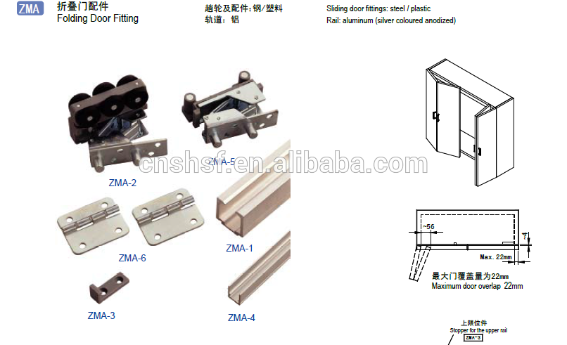 aluminum sliding door track and rollers folding doors ZMA on China WDMA
