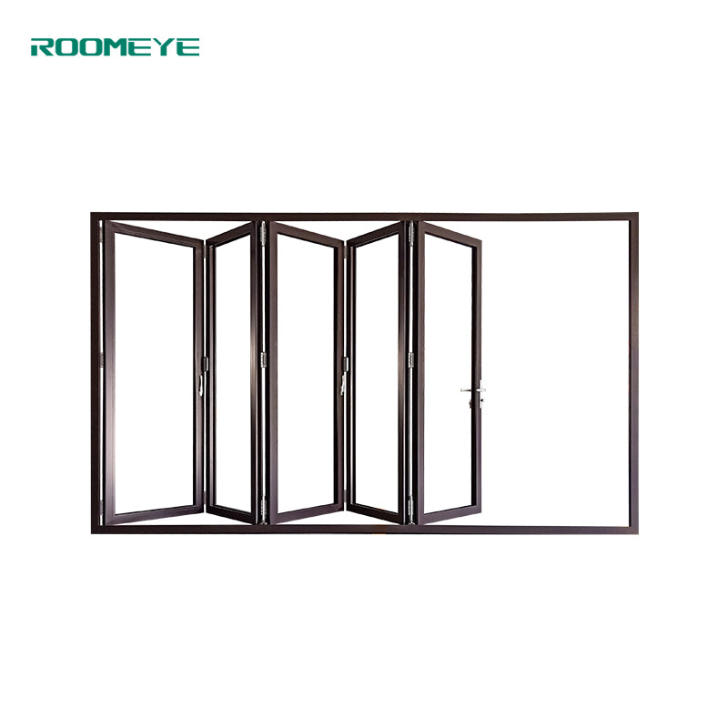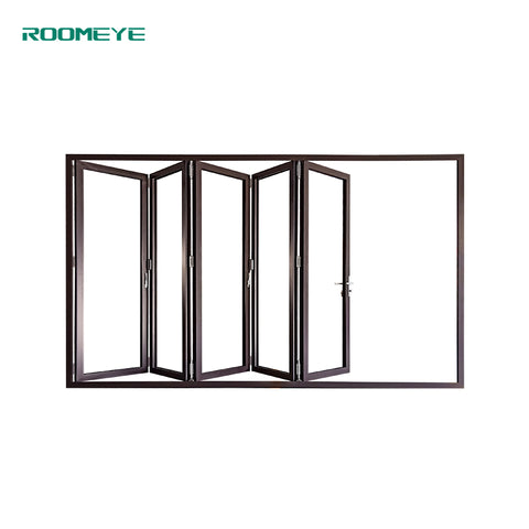 Product Description Bi-folding door is suitable for both commercial and residential construction. Multi- configuration provides you more choices. Low threshold design realizes barrier free passage.  Product Name Roomeye aluminum bi folding door( 80 series) Material Aluminum thermal break profile 2.0mm-6063-T5 Color Customized Roller Type Stainless steel Glass Double tempered glass(5mm+20A+5mm)...