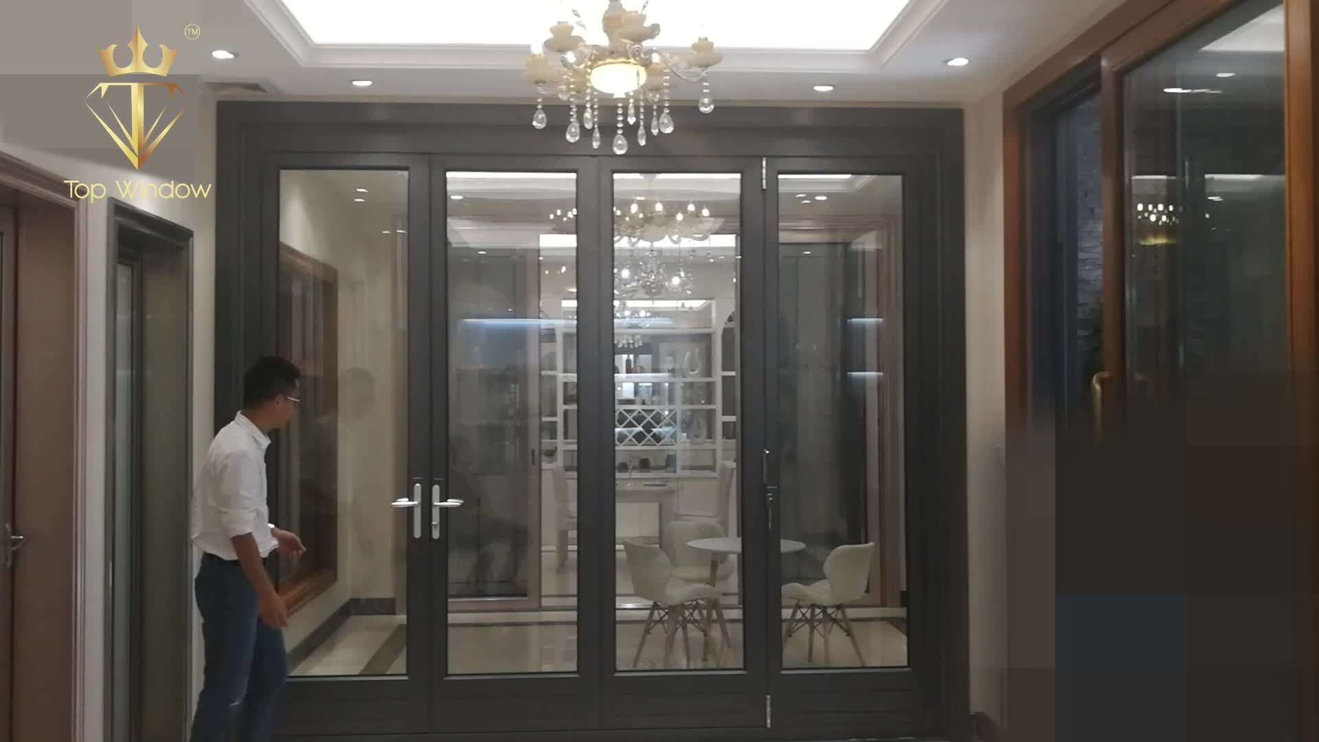Aluminum Patio Balcony Double Glazed Side Opening Exterior Accordion Folding Door With Grill    Product Features: 1.Top hung ball bearing with smooth feeling. 2.weather seals provide a high degree of weatherproofing and acoustic performance. 3.retractable flyscreen install at interior or exterior. 4.220,330,321,431,550,532,660,633,752,743 etc.,available. 5.Heavy duty with 3m height. 6.Glass accommodate up...