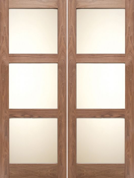WDMA 48x80 Door (4ft by 6ft8in) Interior Barn Walnut 3 Lite Shaker Double Door w/ Matte Glass SH-19 for UK